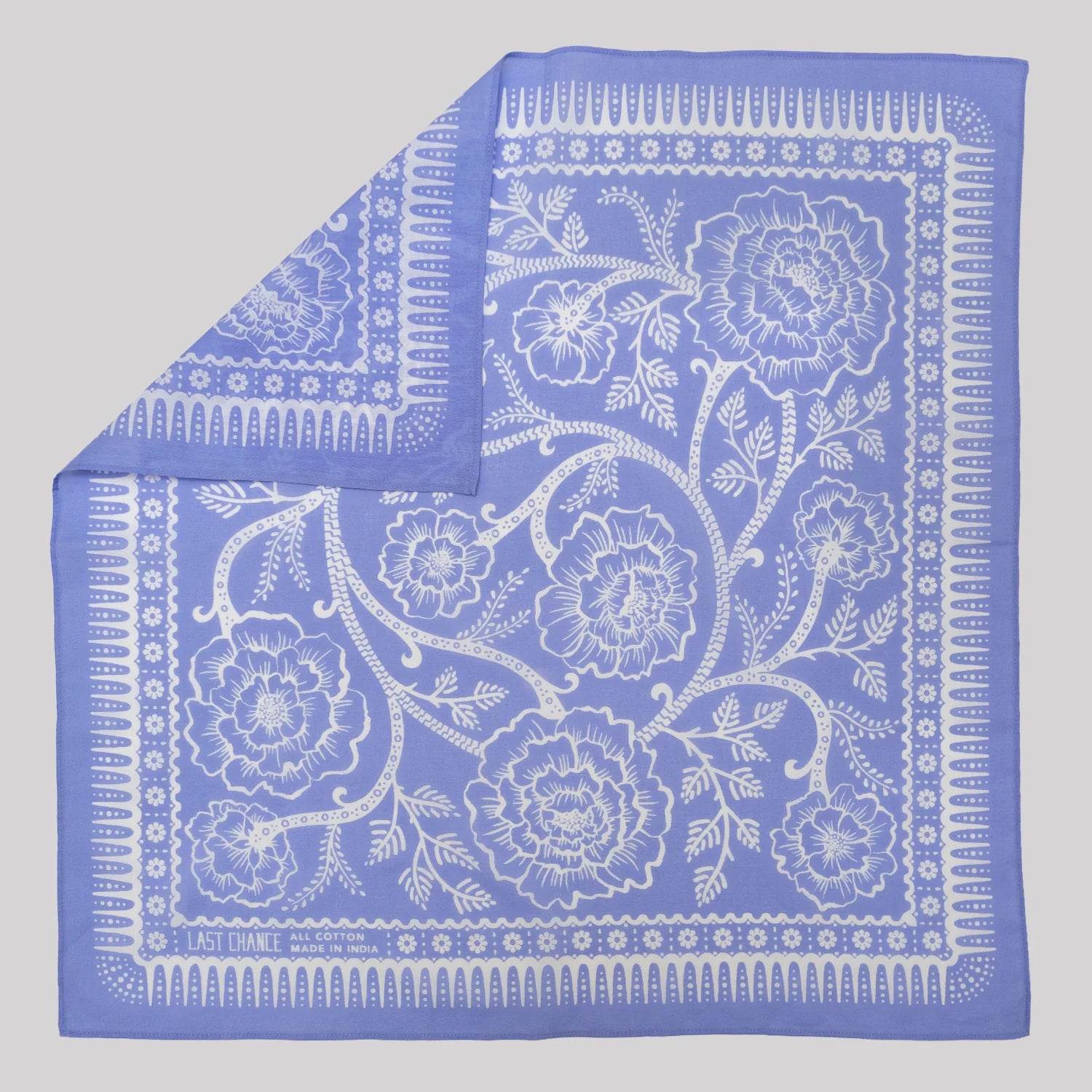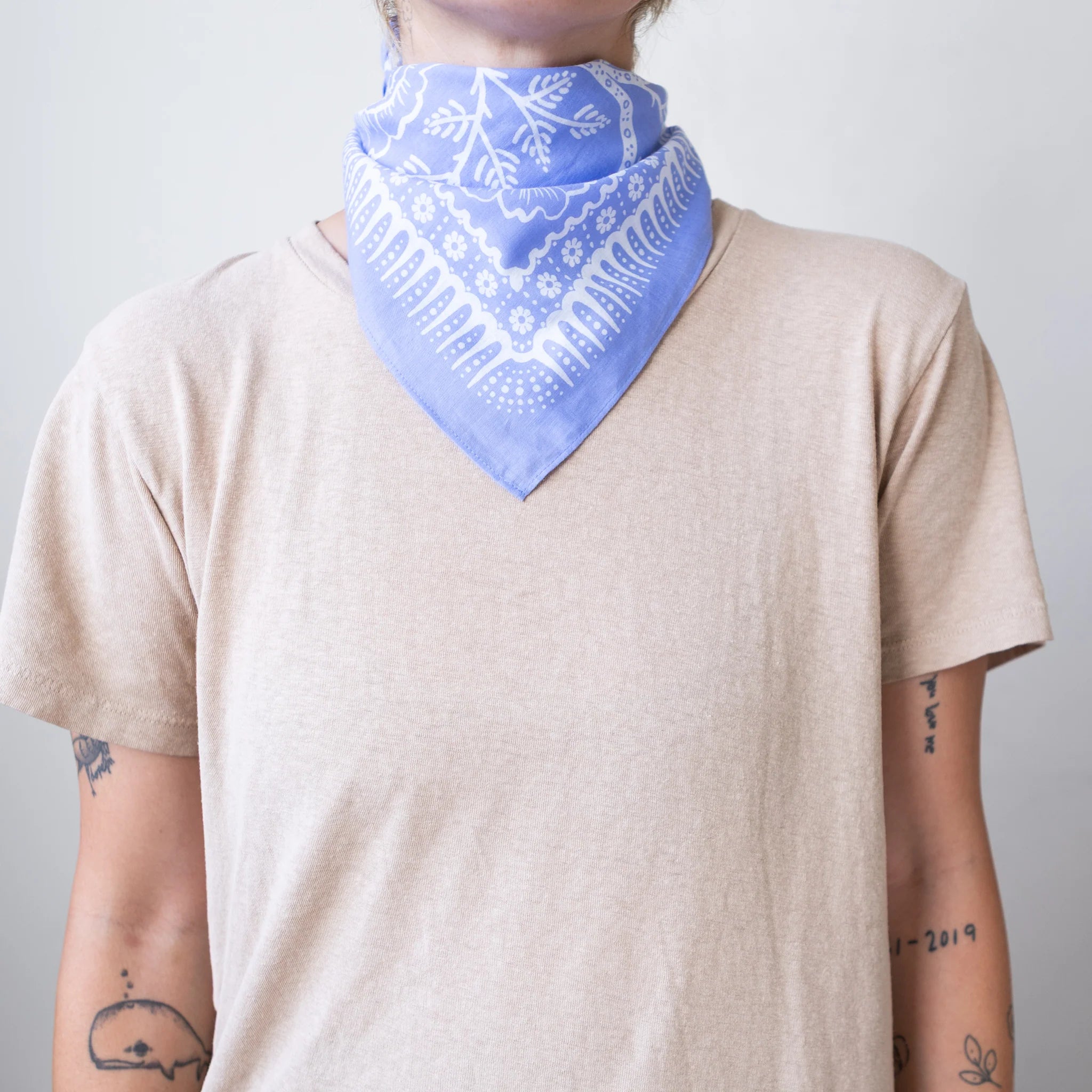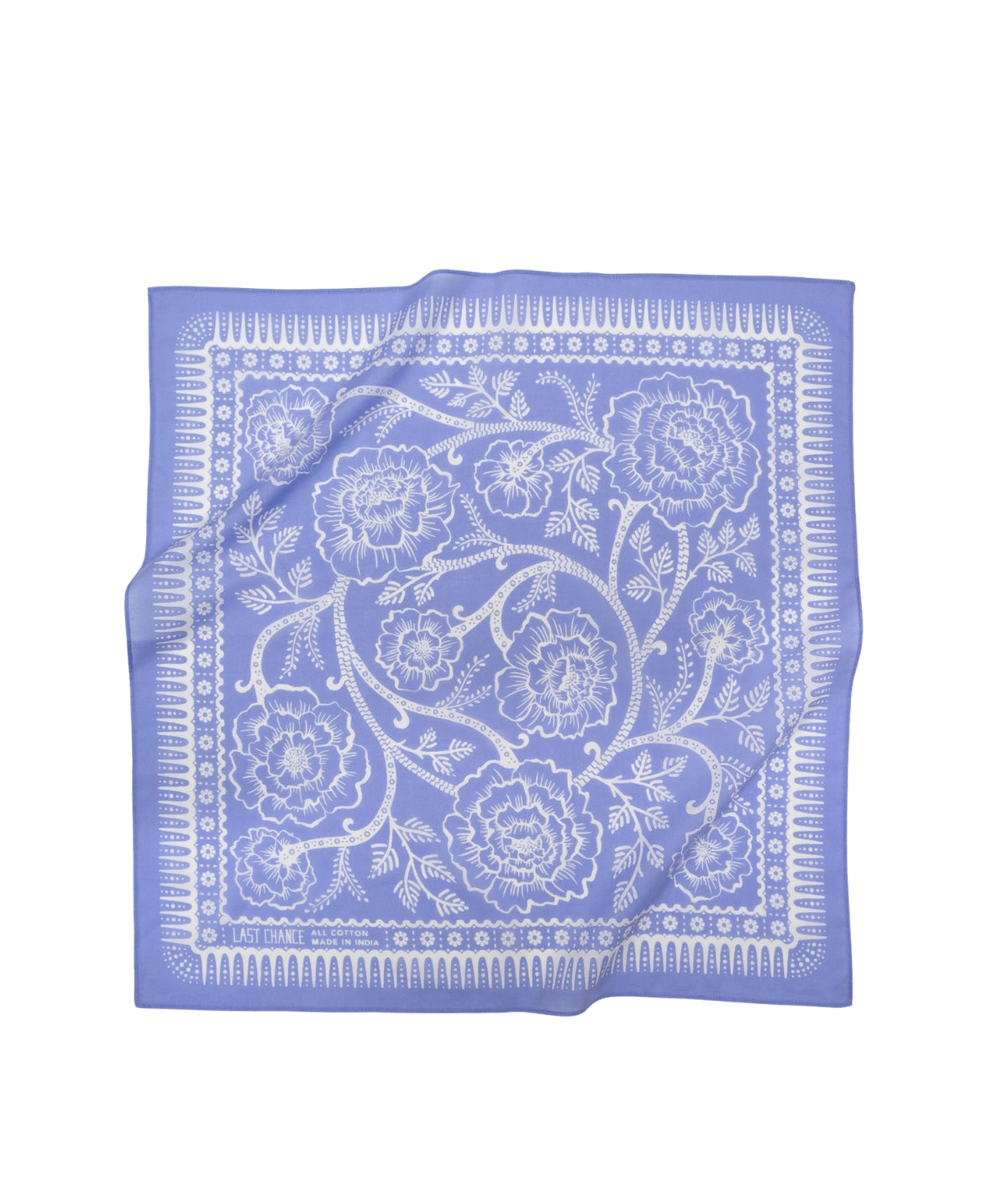 Rambling roses cover this soft organic cotton bandana dyed a pastel purple-blue. Made with high quality cotton. She's the perfect bandana to tie in your hair whether you're gardening at home or traveling the back country. Wear it as a reminder that wild beauty always comes with a few thorns.