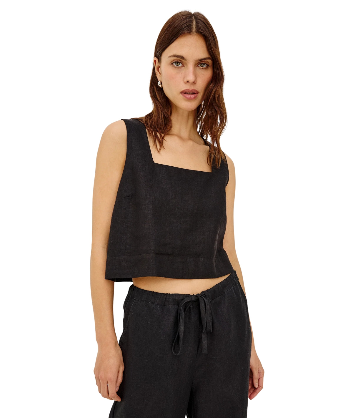 The Akira is a fully-lined heavy linen crop with bust darts to ensure a tapered fit and features a flattering square-neckline. For the ultimate all-white everything outfit, pair with the Carly skirt.