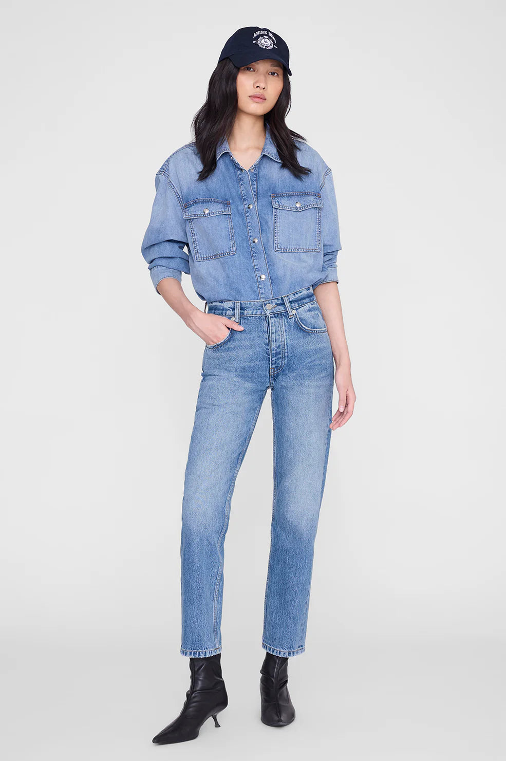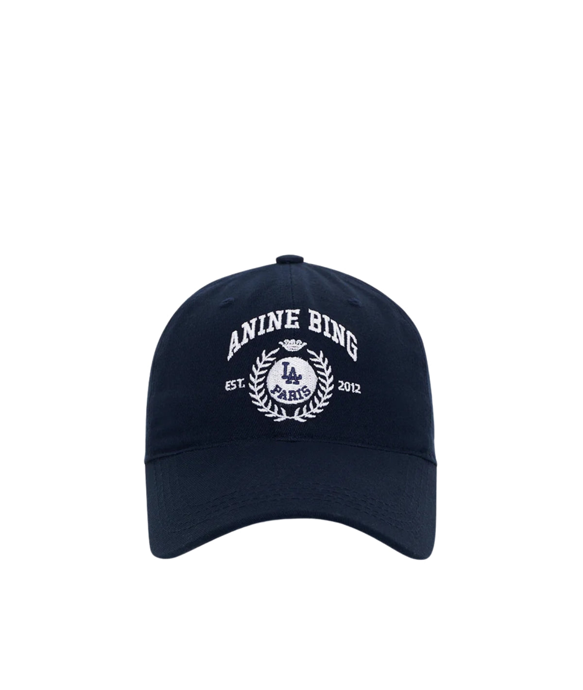 An everyday cap with white contrast stitching and embroidered ANINE BING logo at front.