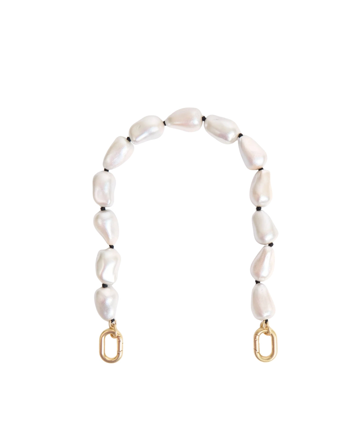 Material: Palmate maple wood beads w/ pearlized paint coating / Black poly cord knotted between wood beads / 14k vintage gold plated brass and zinc