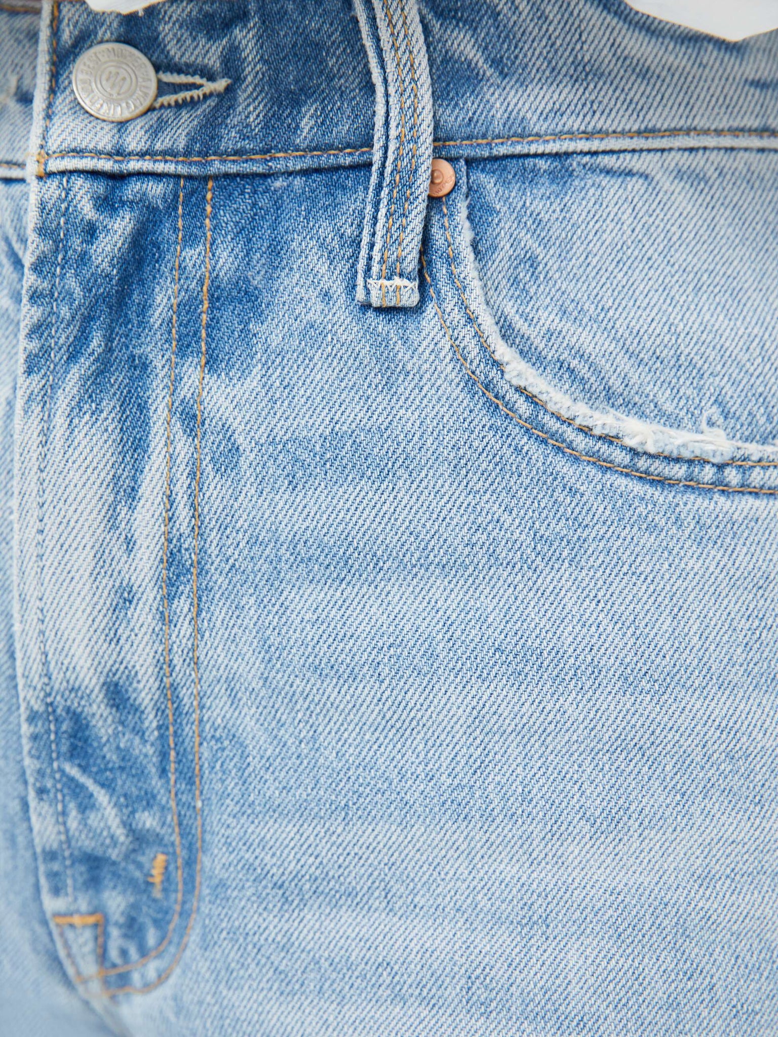 These jeans are rigid and takes time to break in. MOTHER says patience is a virtue.