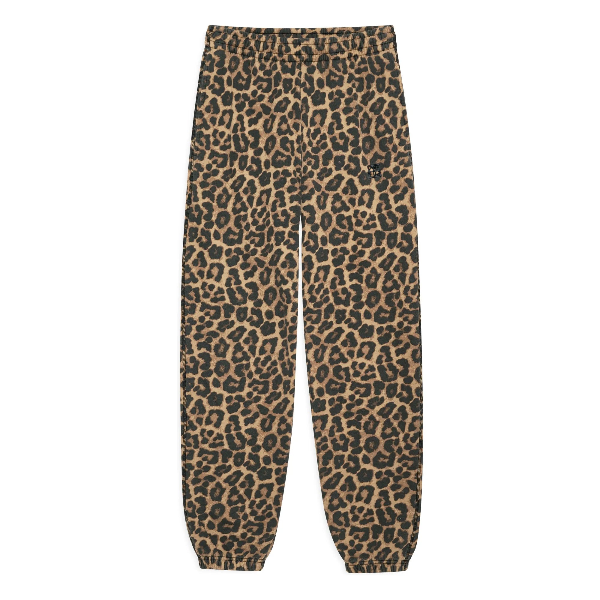 • A relaxed sweat pant made from mid-weight 100% cotton fleece in black and brown leopard