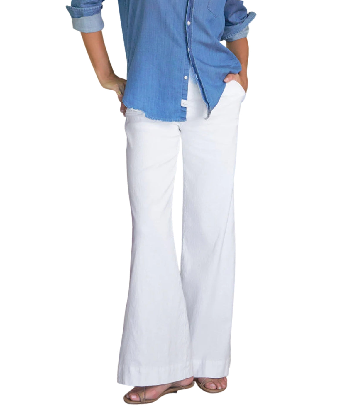 - Mid-rise, wide-leg fit