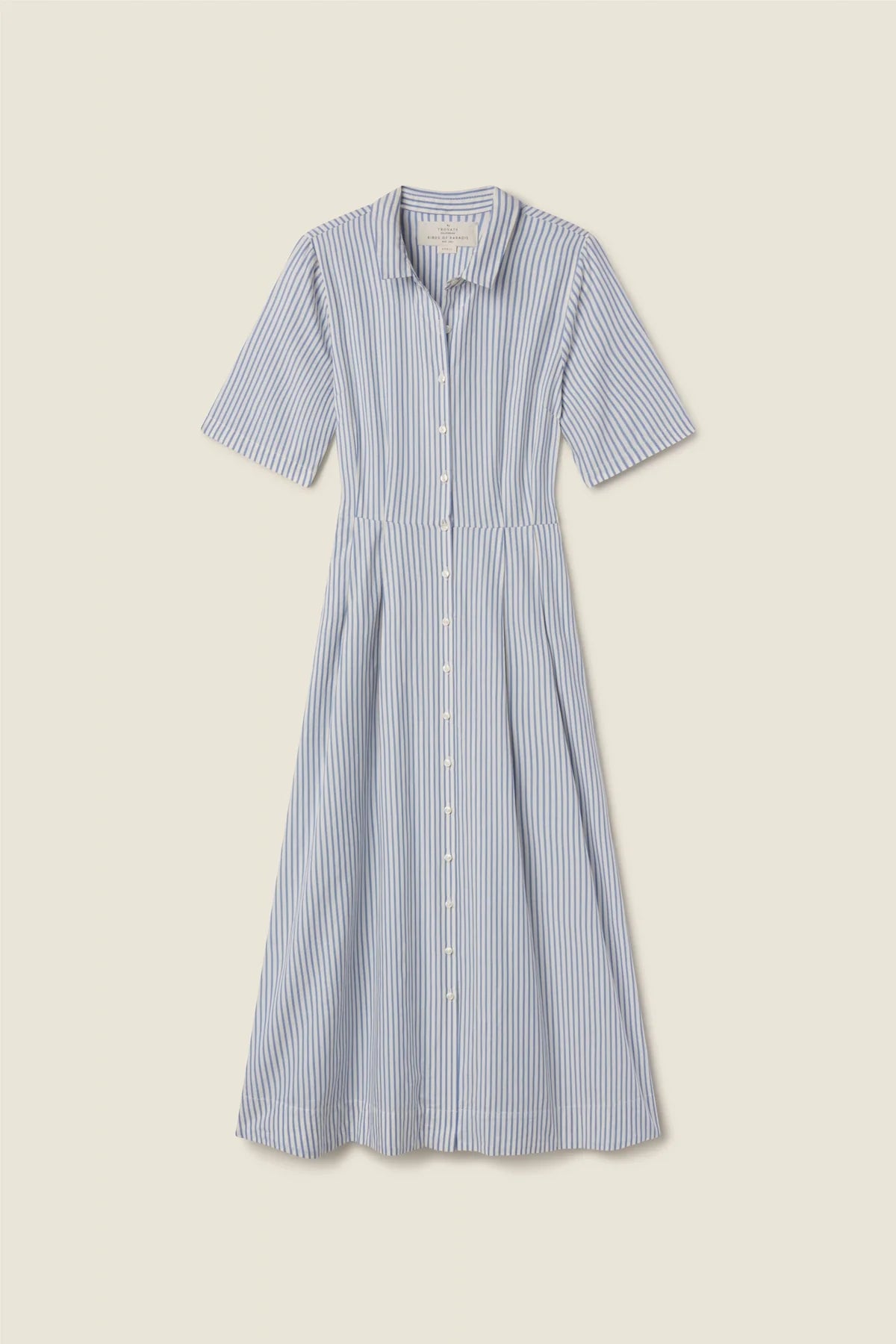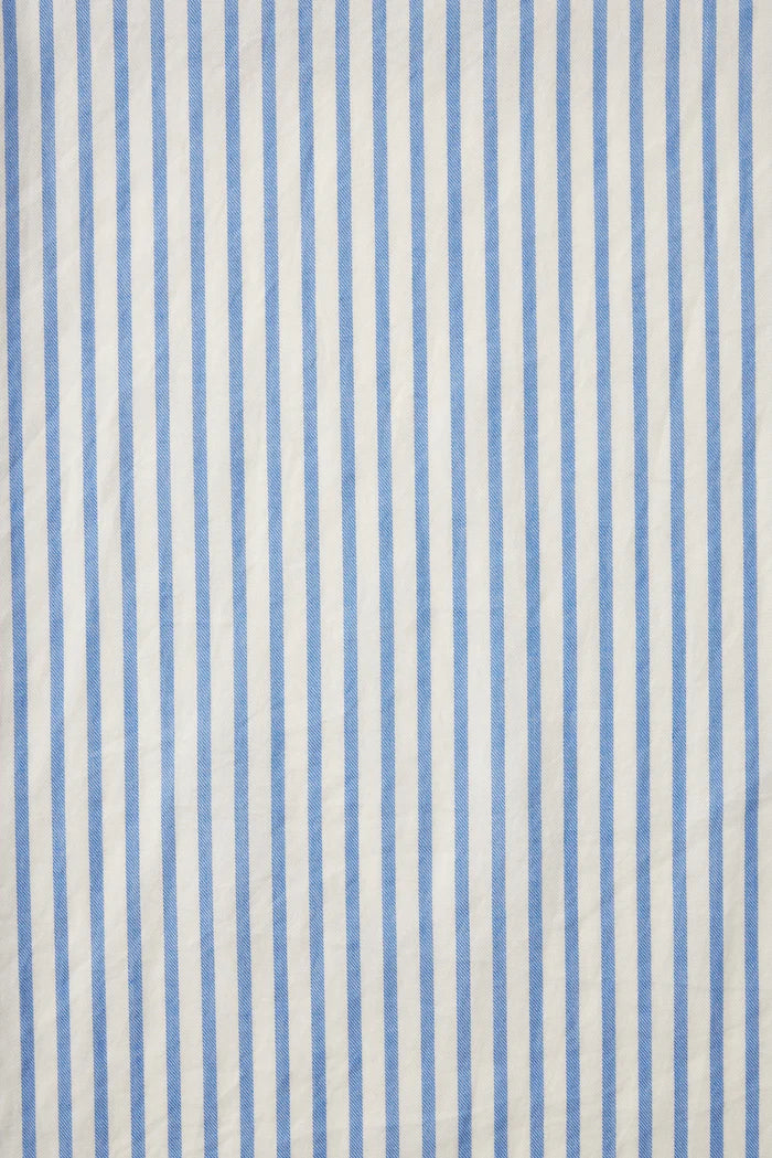 The Aster Dress is our vintage-inspired shirt dress with a cinched pleated waist, full-button front and elongating midi hemline. Featuring signature hip pockets and cuffable short sleeves. Made from our coastal cotton twill and shown here in Seaside Stripe.