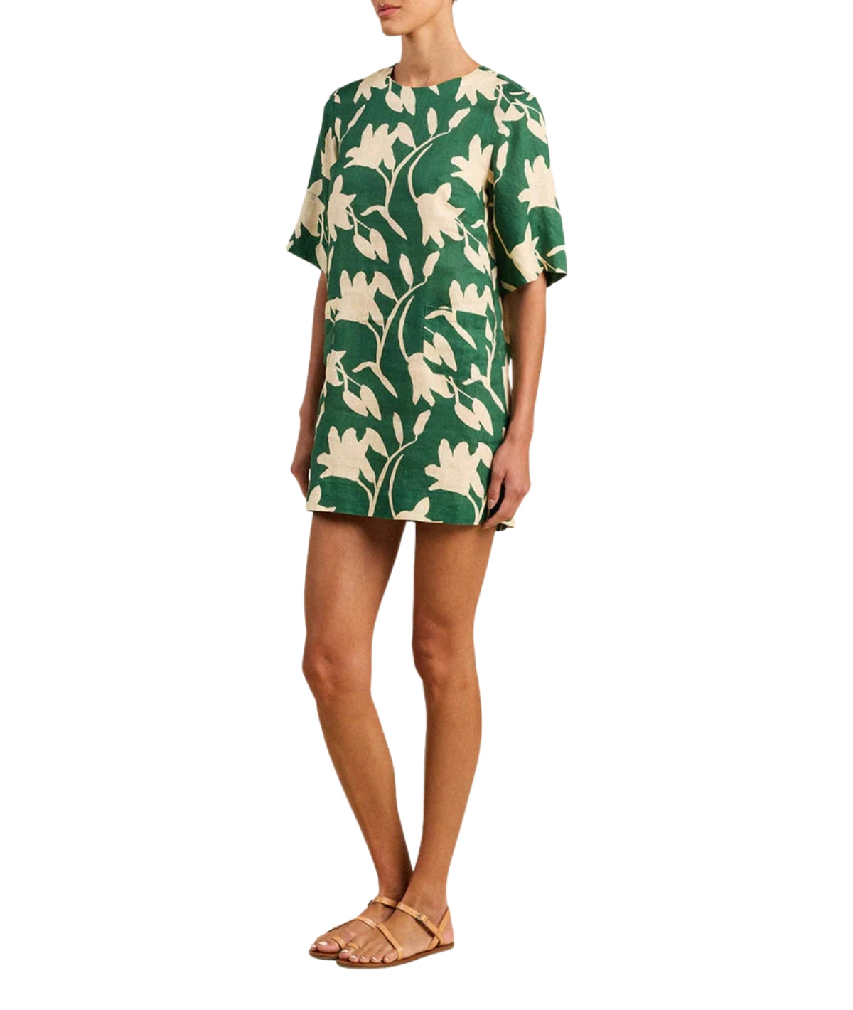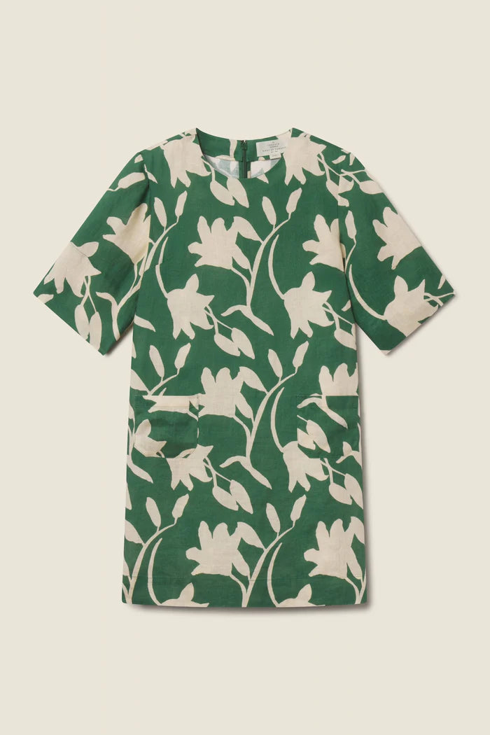 The Manu Dress is a mini-length shift dress with cleanly finished short sleeves, neckline and hidden back zipper closure. Shown here in Madalena Floral and made from our linen.