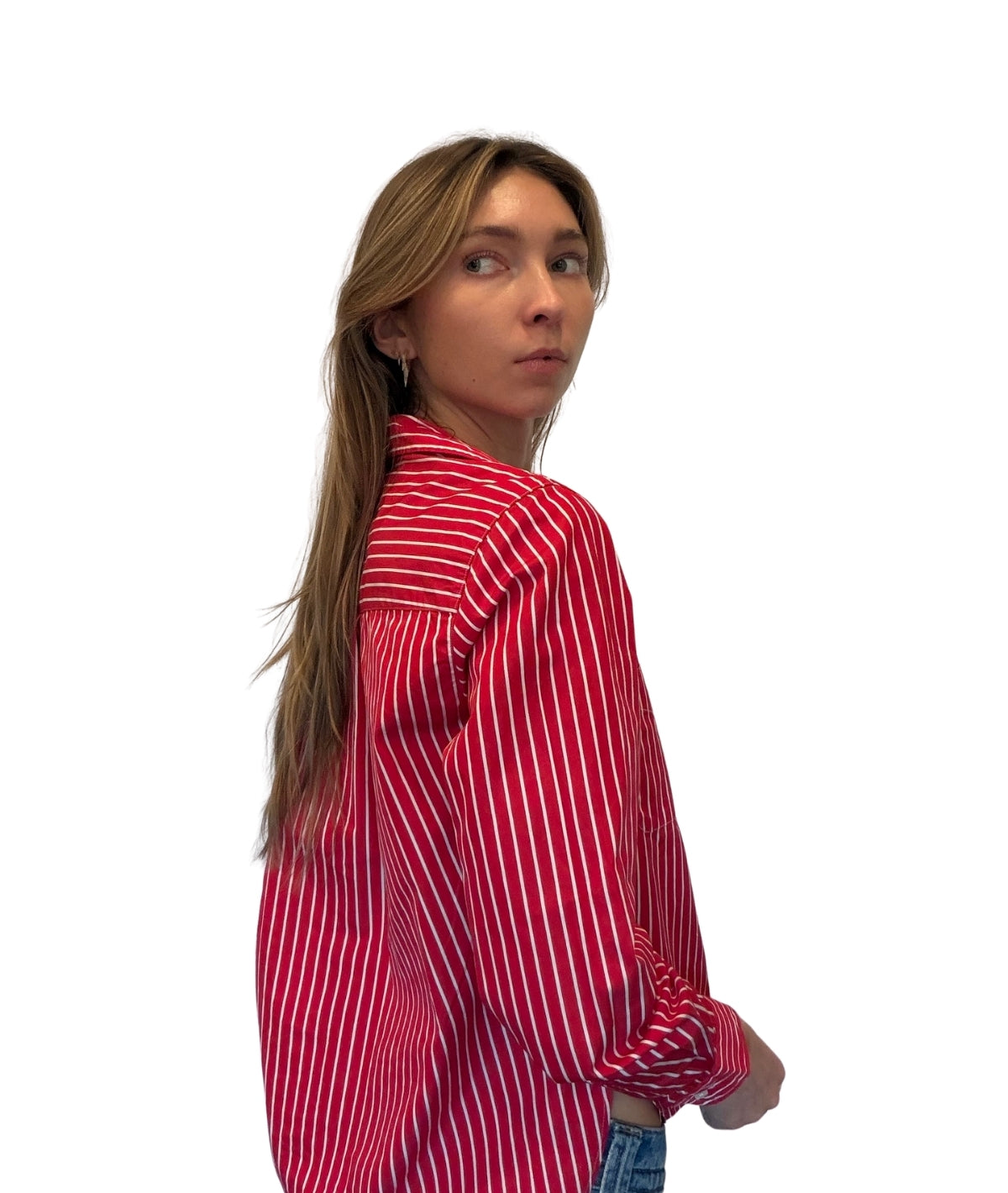 Signature bust flattering button placement and long sleeves with button cuffs