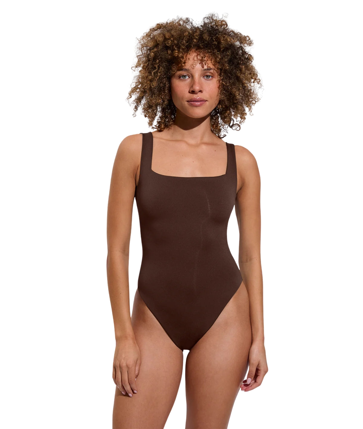 - Medium bum coverage, high cut leg, one-piece swimsuit