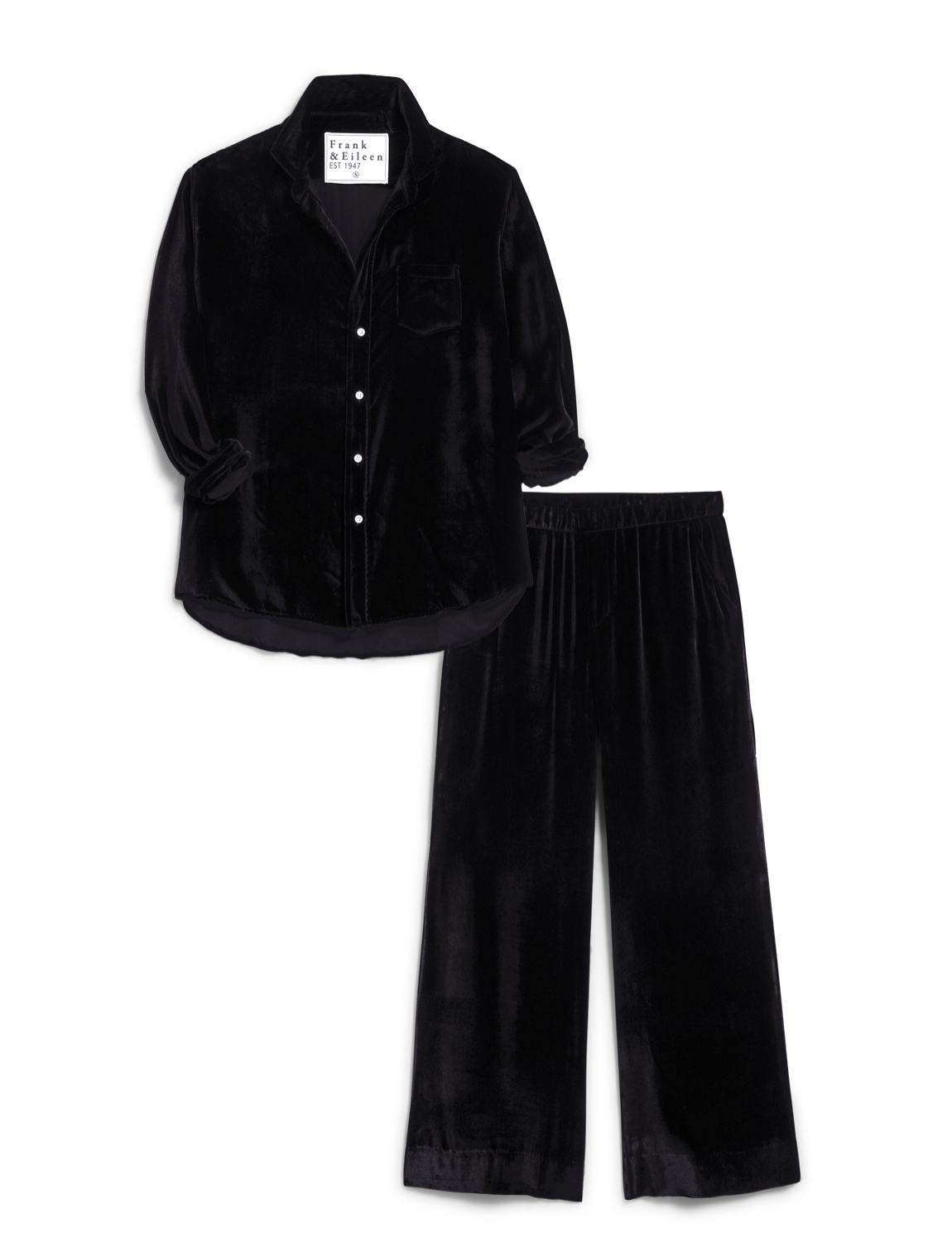 Relaxed refinement informs a silk-kissed velvet set that features a graceful button-up and cropped pants you can wear together or easily pair with other favorites.
