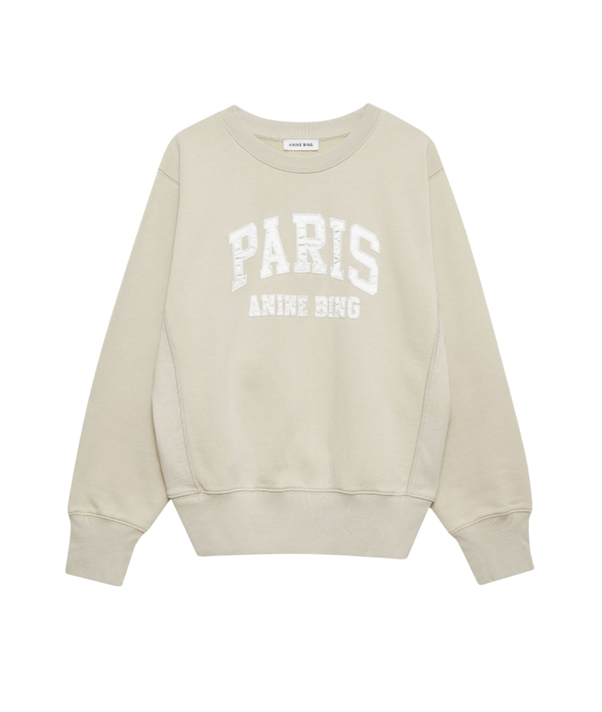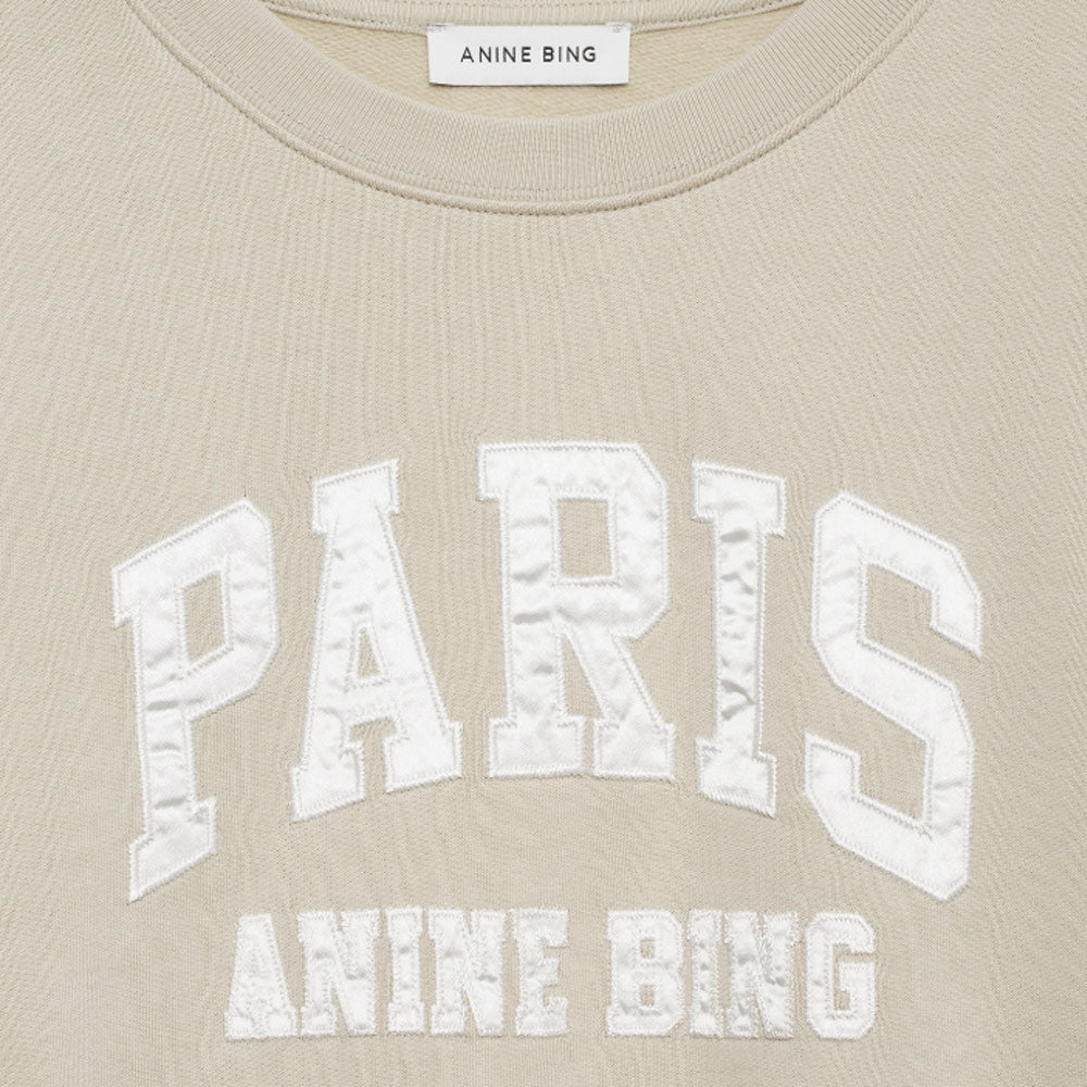 Anine Bing signature Harry Shrunken Sweatshirt in a new Beige color, featuring 'PARIS' in satin.