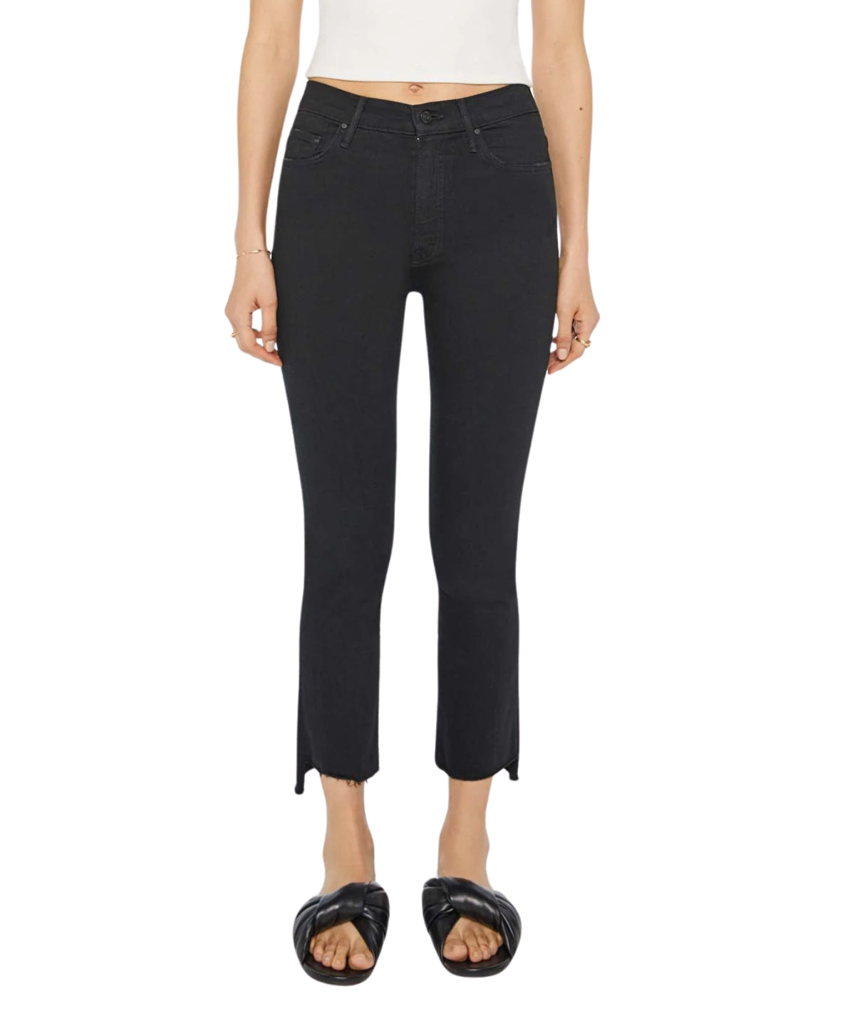 Plead the fifth. This iconic high-waisted bootcut hits at the ankle with a frayed step-hem. Made from stretch denim, Not Guilty is our bestselling black wash.